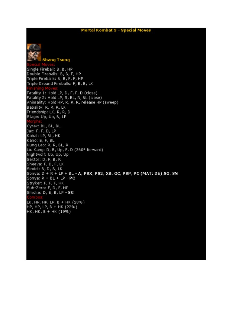 **tutorial in description**this is a video showing all of the fatalities, animalities, friendships, and babalities for ultimate mortal kombat 3. Sprites, arenas, animations, backgrounds, props, bios, endings, screenshots and pictures. The original mortal kombat warehouse displays unique content extracted directly from the mortal kombat games: Hold lp, f, f, d, f, then. This title brings many changes, as it now features a run button, chained combos, and some other minor occurrences.